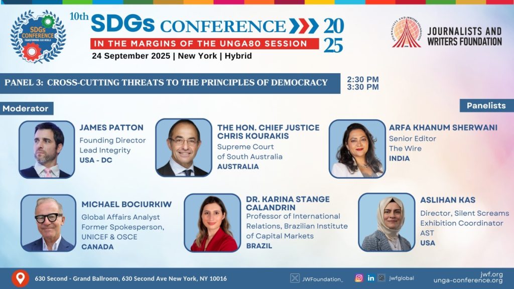 In the Margins of the 80th Session of the United Nations General Assembly (UNGA80), the Journalists and Writers Foundation hosted the 10th Annual SDGs Conference 2025 in collaboration with 56 civil society organizations from 30 countries on Wednesday, 24 September 2025 in New York.
