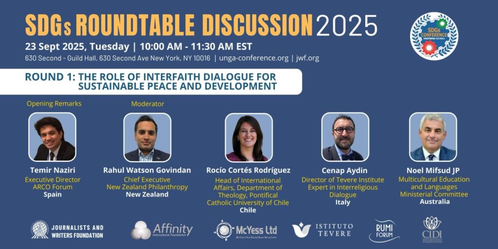 As a part of the SDGs Conference 2025, the Journalists and Writers Foundation (JWF), in partnership with its 56 NGOs from 30 countries organized the SDGs Roundtable Discussion 2025 to discuss critical issues to promote and protect sustainable peace and development. This side-event created a platform for multiple stakeholders, including experts, practitioners, and civil society leaders to raise awareness on social problems and exchange ideas on possible solutions to social, economic, and environmental issues.